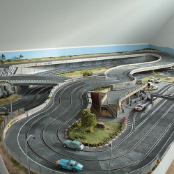 My personal track, Ninco 3 lanes, fully custom made scenery.